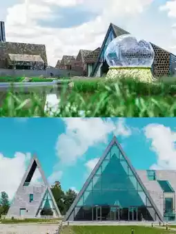 Finnish-style glass triangular villas (3m+ height) with floor-to-ceiling windows and private gardens. 87% forest coverage creates nature's oxygen bar with breathtaking views.