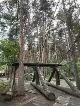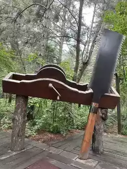 This is a free attraction, and the forest displays logging tools and transport equipment, as shown in the photos.