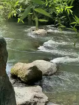 The lake water is as green as jade, and you can see colorful ornamental fish 🐟