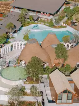 In addition to the hot springs in the rooms, the hotel also has a large outdoor hot spring area with 43 different types of pools to meet the needs of all guests.