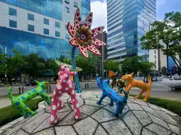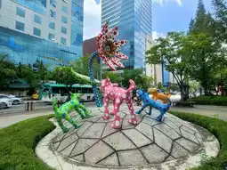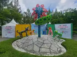 The same goes for Yayoi Kusama's works. The name of the work installed in the Peace Park is Hello, Anyang with Love, and it depicts flowers in full bloom and puppies. I'm having a good time. Thank you.