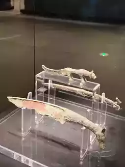 The Yinxu Museum has two floors. The second floor introduces the culture of the Shang Dynasty, while the first floor is a patchwork of exhibitions. The culture of the Shang and Zhou Dynasties was mainly recorded by the characters on oracle bones and bronzes, which are commonly known as oracle bone inscriptions and bronze inscriptions. The Shang Dynasty had both of these writing carriers. Bronze inscriptions are also called Jinwen, which were passed down to the Western Zhou Dynasty and later, while oracle bone inscriptions were rarely found after the Shang Dynasty. The Yinxu Museum has many bronzes and ancient jades. With the large tombs nearby, there is a sufficient supply of artifacts. However, after seeing many bronzes, they are all similar, and there are not many surprises. The collections of the National Museum, Hunan Museum, Hubei Provincial Museum, and Shaanxi History Museum are very different. The regular configurations of animal head knives and arrowheads are common, but the bronze bell is a bit novel. It reminds me of an ancient poem, "A man is judged by his clothes, and a horse by its saddle. A dog with a bell runs happily." Even dogs in the Shang Dynasty needed emotional value.