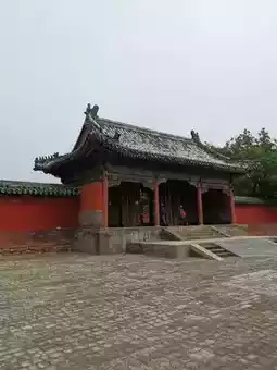 Screen wall, archway, stele pavilion, side hall, Jingren Hall, and tomb platform.