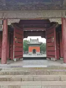 Screen wall, archway, stele pavilion, Jingren Hall, iron gate of the tomb platform, tomb, etc.