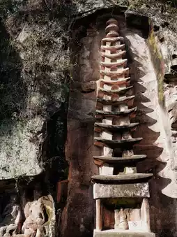 ✅Rock caves of the Five Dynasties and Ten Kingdoms: Below the cliff with the words "Turtle and Crane", the "Hell Transformation Niche", "Thousand Buddha Niche", and "Western Three Saints" are the most famous.