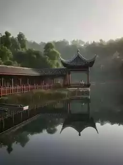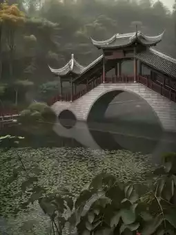 Featuring framed landscapes typical of Sichuan gardens. The Three Sages Tower viewed from the bridge is magical at dusk.