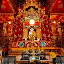 This temple is highlighted by the golden Phra Mahathat Chedi, approximately 95 meters high, which is considered the tallest pagoda in the South. The design was inspired by the Mahabodhi Buddha Gaya in India. Inside the pagoda, there are beautiful murals that tell the story of the life of the Buddha. The temple grounds are spacious and shady with various trees. There is a stone courtyard under the trees for tourists to relax. However, be prepared for the hot weather, especially during the day.
