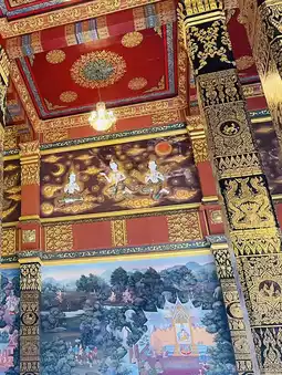 This stunning and serene temple features a magnificent golden pagoda standing tall amidst breathtaking nature.