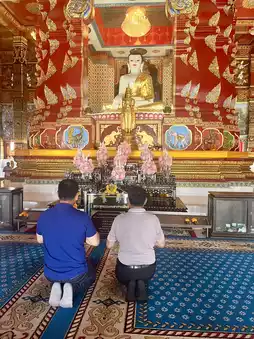Dress Code: Dress appropriately, modestly, and completely revealing. Shorts are prohibited. If you do wear one, the temple provides a sarong (pha sarong) for borrowing to wear inside the temple grounds.