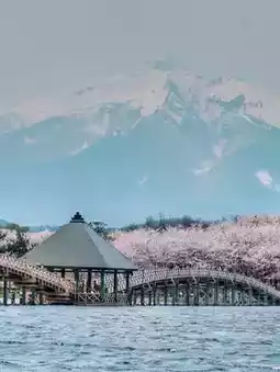 We caught the perfect shot with the Tsurunomai Bridge, cherry blossoms, a serene lake, and snowcapped mountains all in one frame โ absolutely stunning! ๐๏ธโจ