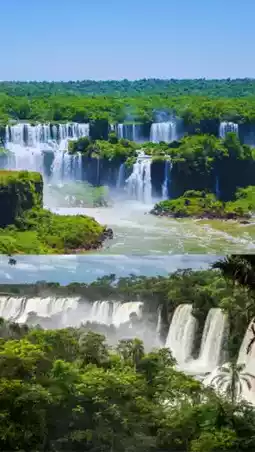 🌊 Iguazu Falls, one of the world's largest waterfalls, is nestled in the tropical rainforest on the border of Brazil and Argentina. The thunderous sound of water crashing against the rocks and the rainbows that appear in the sun are both breathtaking and mesmerizing. Travelers can choose to view the falls from the Argentine side for a close-up view of the majestic water curtain, or take a boat ride up close to the terrifying and breathtaking "Devil's Throat."