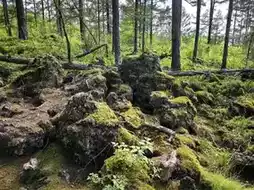 This volcanic lava landform covering about 200 square kilometers is known as a "natural volcanic museum." Walking through it, you encounter unique sights like tortoise-back rocks, lava mounds, and jet discs. Particularly interesting are the volcanic bombs—huge stones formed when lava ejected by volcanic eruptions cooled and solidified in the air. Some weigh several tons but have smooth, rounded shapes. In autumn, the birch trees sprouting from cracks in the volcanic rock turn golden, creating a strong visual contrast with the black volcanic rock.