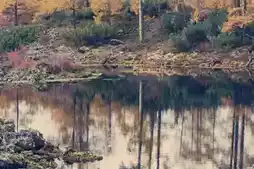 [Rhododendron Lake] is a lake formed by lava flow blocking the valley. The lake surface is calm and deep blue, with beautiful reflections. The surrounding golden forest reflects in the lake like a painting. Morning mist appears in the early hours, creating a fairy-like atmosphere.