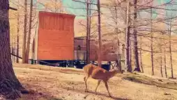 Enter the [Deer Park], where gentle and cute sika deer roam the forest. Walk along the wooden plank road up to the Deer Viewing Platform, with a super wide view and continuous forested mountains in the distance.