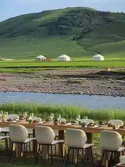 📍Caoyuan Suji’s location is incredible! It’s by the river valley of the Ulan Maodu Hangai Grassland, perfect for watching sunsets🌇 and the Milky Way🌌. There are five accommodations inside: Caoyuan River Valley Hotel, natrail・Jidi, Da Le Zhi Ye, Nanan Homestay, and Fei Niao Ji Homestay. We stayed at Caoyuan River Valley Hotel, the same as featured on "Set Off Now"! With a 270° view of the river valley, the Ulan River at sunset is stunning, and the Milky Way at night is breathtaking. Watching stars with kids is super healing~