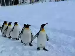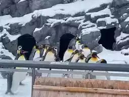 During winter (from late December to mid-March), when the snow is thick enough, the adorable King Penguins come out to parade along a designated path in the zoo!