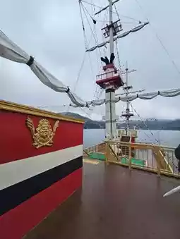 A pirate ship that travels from Togendai Port to Hakone-machi Port and Motohakone Port in about 25 to 40 minutes.