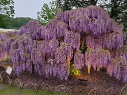 Great Wisteria Tree: Admire this massive, umbrella-like tree that glows with color.