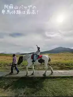 You can also experience horseback riding from 10am to 4pm! The horseback riding experience with the Aso Mountain Bag is the best!