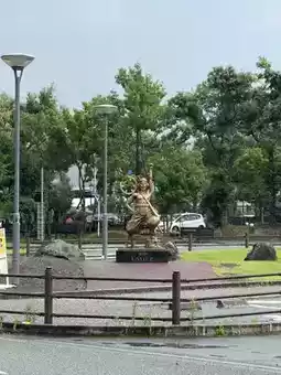 A bronze statue of Usopp, the sniper from the popular manga "ONE PIECE," sits in the rotary in front of Aso Station. It was unveiled on December 8, 2019, as part of the "Hino Country Reconstruction" reconstruction project, a collaboration between the author, Eiichiro Oda, and Kumamoto Prefecture, in hopes of restoring nature in Aso and encouraging pride in the region.