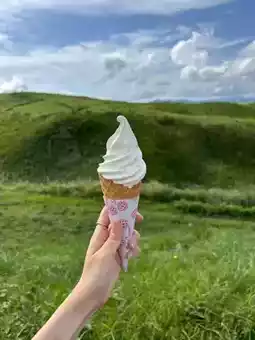 A spectacular spot with a panoramic view of the Aso Five Peaks⛰️✨ Vast grasslands and majestic mountains unfold before your eyes, creating a breathtaking 360-degree panoramic view. Many visitors come for drives and tours, enjoying a stroll while feeling the refreshing breeze.🌿 It's also a great place for photos, especially during the sunrise and sunset. This is a spot where you can refresh your mind and body while experiencing the natural beauty of Aso. The Jersey Soft Recoom is highly recommended, so be sure to try it!🍦