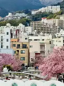 Embark on a dreamlike journey surrounded by cherry blossoms - Atami, a seaside town in Kanagawa Prefecture, Japan, is a beautiful cherry blossom viewing spot! Not only are there beautiful cherry blossoms, but you can also enjoy the stunning view of the sea and cherry blossoms, immersing yourself in the romance of spring 💕. It is said that when the cherry blossoms bloom in Atami, it is like a pink snow, turning the entire city into a fairyland.