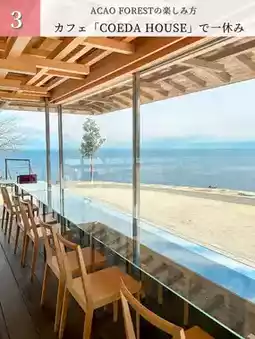 ▶︎COEDA HOUSE: A cafe designed by Kengo Kuma, with a fully glassed structure that offers a spectacular view of the sea and garden. Its design is in harmony with nature.