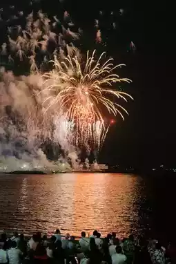 The largest-scale fireworks show in West Izu! Around 2,000 fireworks daily, featuring rapid sequences and star-shaped bursts. The grand finale? A massive "Niagara Falls" firework that lights up the summer night sky like daylight. The venue also hosts lucky bag raffles, taiko drum performances, and pop-up stalls—super fun!