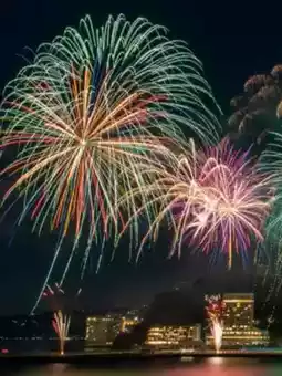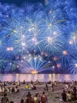 The Atami Sea Fireworks Festival, which began in 1952, is a signature event of Atami held throughout the year. The fireworks launch site is surrounded by mountains on three sides and faces the sea on the other, creating an echo effect that amplifies the sound of the fireworks, making the experience truly breathtaking. The festival's highlight, the "Sky Niagara Falls," features silver fireworks reflecting on the sea, creating a stunning visual spectacle.