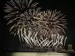 · Enjoy the stunning view of the fireworks blending with the sea's reflection.