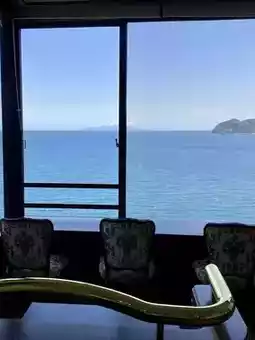 Located within the vast grounds of Hotel New Akao, Hana no Yosei is often called “the most scenic café in Izu”—and it’s easy to see why. From the moment you step inside, you’re greeted by breathtaking views of the Sagami Bay stretching out before you. Whether you sit by the window or out on the terrace, the panorama steals the show.
