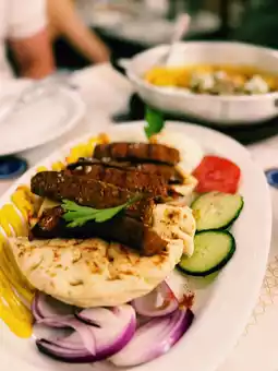 Once you’ve soaked in the views, head to a classic Athenian taverna nearby. Savor specialties like souvlaki, moussaka, or decadent honey-drenched desserts. Eating indoors gives you a front-row seat to the warm hospitality and contemporary vibes—perfect for relaxing after exploring!