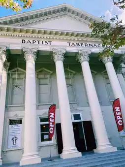 The Gothic Revival century-old church has a stone exterior, beautiful vaulted ceilings and stained glass windows.