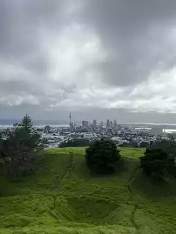 📍 Along the trail: frame the Sky Tower with the crater and city silhouette.