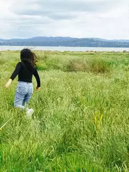 The highlight is the peaceful atmosphere, overlooking Manukau Bay and the vast grasslands where farm animals naturally roam, including cows, sheep, goats, chickens, and pigs. But the most popular is the sheep. There are so many of them. If you come during the holidays, there will be many groups and families coming to picnic and cook food together.