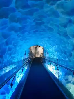 📍Another highlight is the ~110m long curved glass underwater tunnel with a sliding walkway, making you feel like you’re diving alone under the sea.