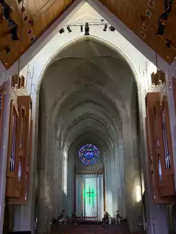 The cathedral is set amidst quiet, tree-lined streets in Parnell, offering a peaceful environment within the bustling city. Its contemporary design features clean lines, a soaring bell tower, and an inviting interior flooded with natural light. The surrounding grounds include gardens and open spaces, providing a serene atmosphere for reflection and contemplation.