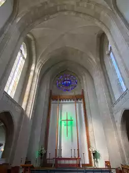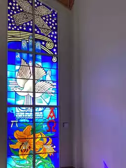 • Stained Glass Windows: Vibrant windows that tell biblical and spiritual stories through colour and light.