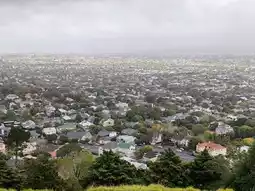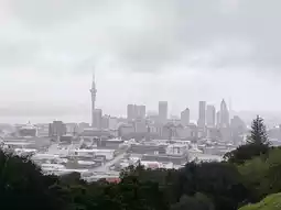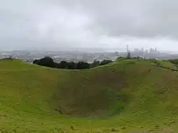 From the top of Auckland's volcanic cones, Mount Eden, a breathtaking view unfolds. The city's skyline—featuring iconic structures like the Sky Tower—blends seamlessly with the vast harbor, creating a magnificent panorama. Below, the lush green crater is distinctly visible, while suburban neighborhoods stretch into the distance. Under a sky often veiled in soft clouds, the natural and urban beauty of the "City of Sails" is captured in one sweeping gaze—though on this day, the light was muted by overcast skies.