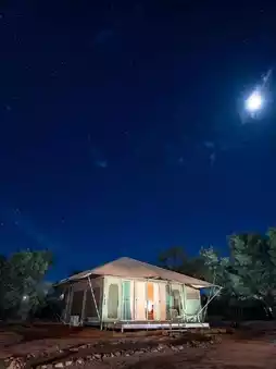 Kick off your adventure at Longitude 131° near Uluṟu. This luxury wilderness camp offers an unparalleled view of the majestic Uluṟu (Ayers Rock) and the stunning Kata Tjuṯa (The Olgas). The unique landscape will provide an unforgettable setting for a romantic getaway. Enjoy candlelit dinners under the stars ✨ and mesmerizing sunsets 🌄 with your loved one. The desert’s stillness and beauty create an intimate and peaceful atmosphere, perfect for a romantic retreat. ❤️