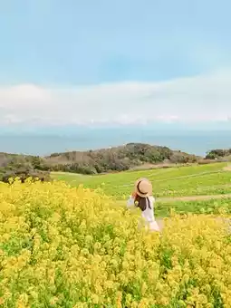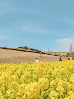 The rapeseed flowers spread all over the place and you can see the sea from the high ground, so it feels so good~😚