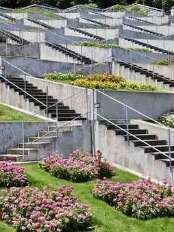 Awaji Yumebutai, located on Awaji Island, is a large-scale complex designed by Tadao Ando. It seamlessly integrates a botanical garden, convention center, and hotel, featuring tiered flower beds and winding corridors that create an architectural wonderland reminiscent of a dream.
