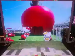 Hello Kitty Apple House serves as an observation deck. Hello Kitty Showbox consists of a theater where you can eat or have dessert while watching a show, and a Kitty shop.