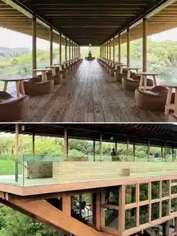 A highlight of the retreat is the 100-meter-long wooden deck equipped with meditation chairs. These chairs are designed to make Zen meditation accessible to everyone, allowing you to enjoy a Zen moment without any physical discomfort.