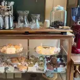 This cafe is located in the mountains and also has a hotel attached! They sell delicious muffins! I read in reviews that if you don't get there early, the muffins will sell out, so I was surprised when I arrived before opening time and saw that there was already a line! There's a general store next door, so I was able to relax! I got the muffins and cinnamon rolls I was looking for to go! I was so happy to have taken photos at such a cute spot! I ate the muffins after I got home, and they were so delicious I definitely want to go back!