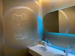 Take a photo of the adjacent "HELLO KITTY SHOW BOX" from the 15m observation deck! You can take a photo of Hello Kitty's face (^^)