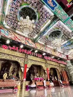 The temple is a blend of Chinese, Thai, and Burmese architectural influences, reflecting the diversity of Buddhist traditions. One of its most iconic features is the Pagoda of Ten Thousand Buddhas, also known as the Pagoda of Rama VI, which has a unique three-tiered design: a Chinese-style base, a Thai-inspired middle section, and a Burmese-style crown. Another major highlight is the 46.5-meter-tall bronze statue of the Goddess of Mercy (Kuan Yin), housed within an elaborate pavilion supported by towering pillars.