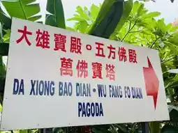 Sometimes, the fun of exploring Kek Lok Si is just following the signs. I stumbled upon one pointing to “Da Xiong Bao Dian” and “Wu Fang Fo Dian Pagoda” and decided to just go with it. That path led me past gardens, prayer halls, and a peaceful fountain surrounded by greenery.