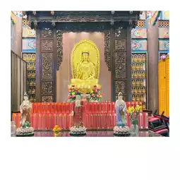 The temple boasts beautiful, vibrant architecture, combining wood and marble carvings. Tourists flock here regularly to pay their respects and write ribbons for their blessings.