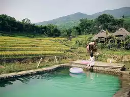 Son Ba Muoi is 3 highland villages of Lung Cao commune. This place is about 130 km northwest of the city center and is considered a miniature Sa Pa because of its temperate climate all year round, the average temperature is 1822 degrees Celsius, sometimes it snows in winter, and the temperature drops very low in summer nights. Hieu Village is a Thai village located on the banks of Hieu Stream originating from the top of Pu Luong. The village consists of more than a hundred houses scattered along both sides of the stream. Every time there is a beautiful rapids, the roofs of the stilt houses become thicker, creating a beautiful waterfall-stilt house scene like a watercolor painting. The entire stream from the beginning to the end of the village is only about a kilometer long but has 5 waterfalls, each waterfall is beautiful and no waterfall is the same. Therefore, the people in the village call all of those waterfalls Hieu waterfall and affectionately call that stream "Hieu streamline" instead of calling it Hieu stream as usual.